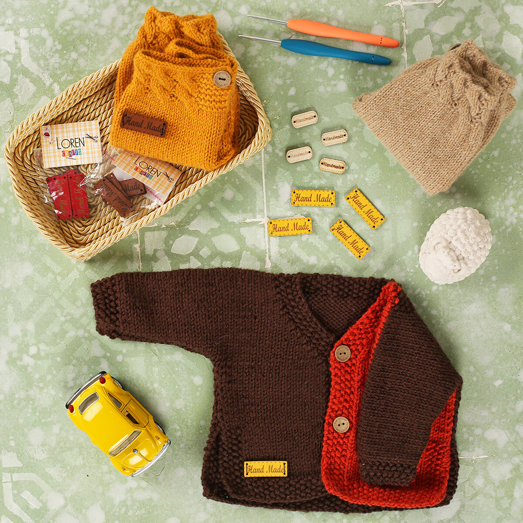 Loren Crafts 5 pcs Leather "Handmade" Tag, Light Brown