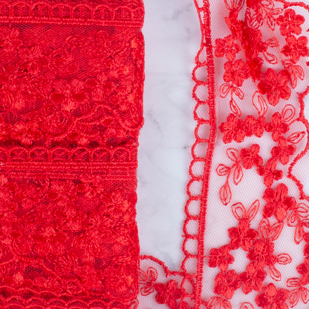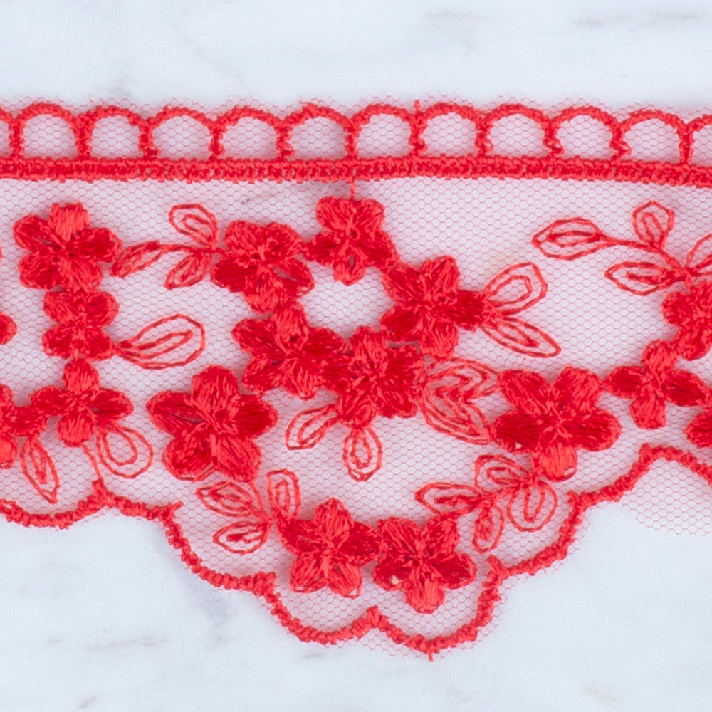 Önel Lace Ribbon, 5 cm, Red, Flower Patterned - 3406
