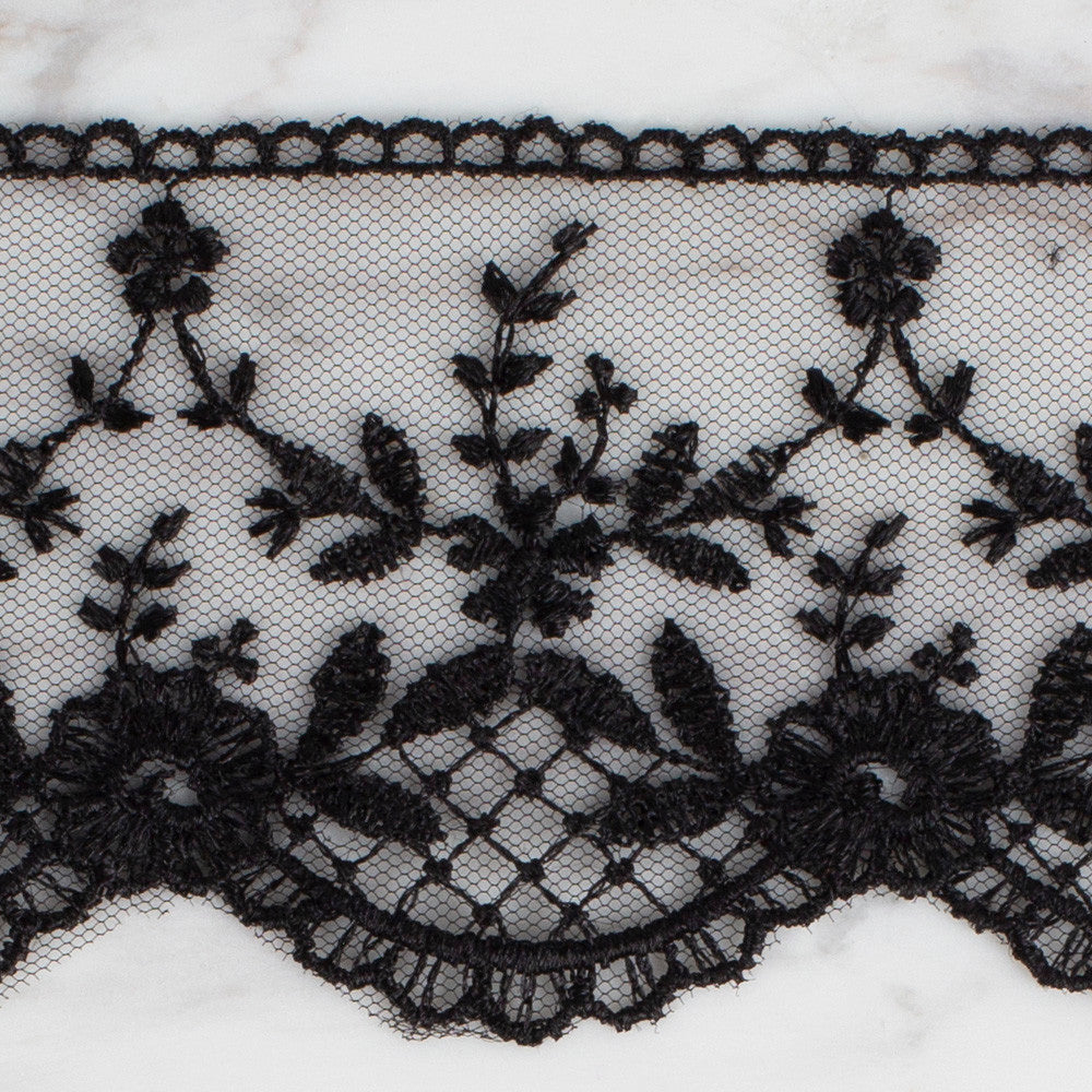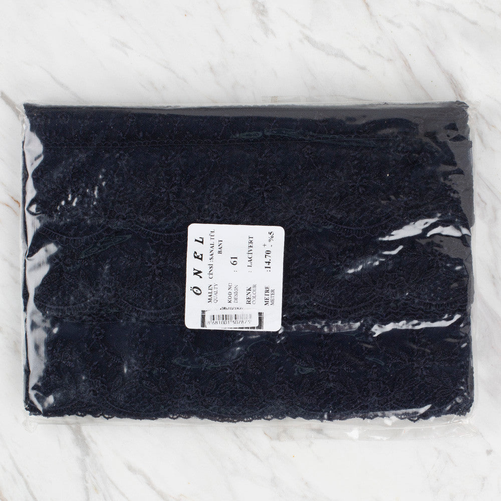 Önel Lace Ribbon, 6 cm, Navy Blue, Flower Patterned - 61